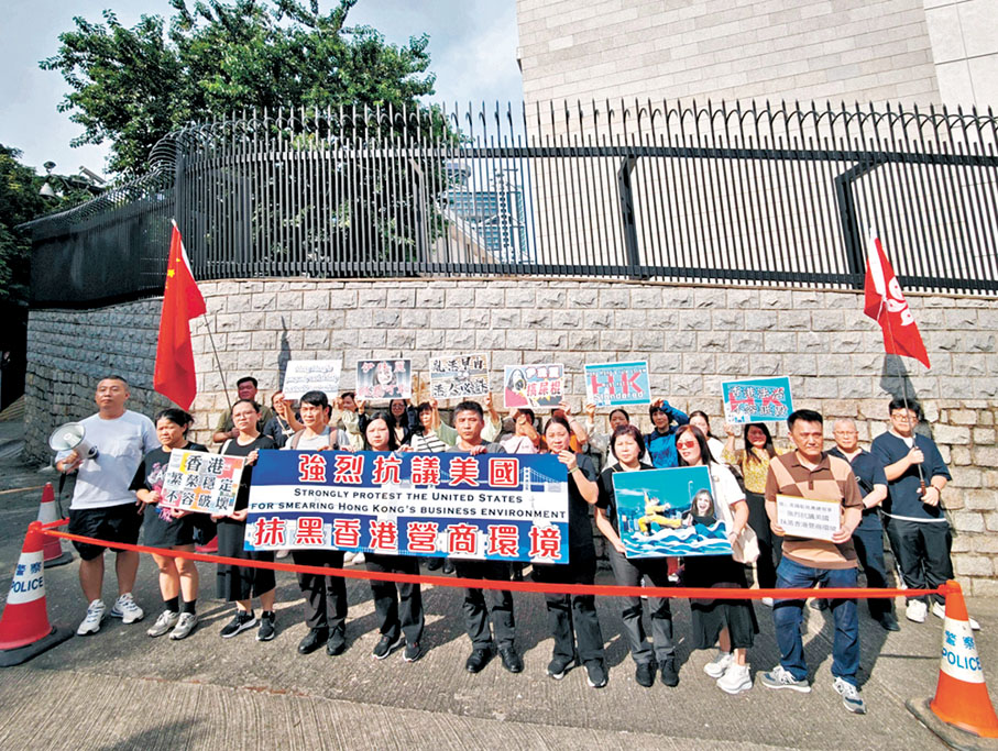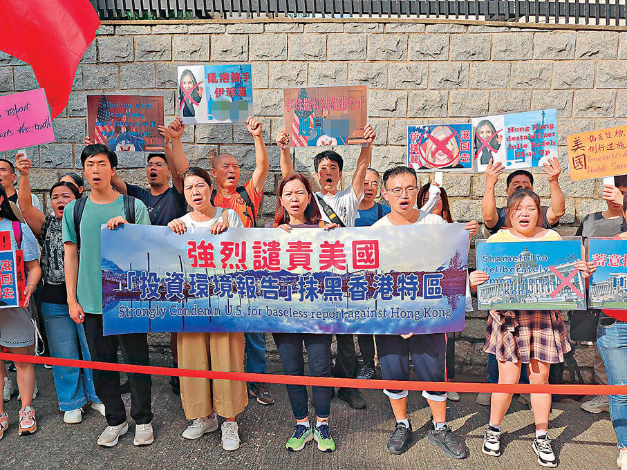香港文匯報(bào)訊(記者 鏡棠)近日美國國務(wù)院發(fā)布所謂《年度投資環(huán)境報(bào)告》,對(duì)香港營商環(huán)境妄加指責(zé),惡意抹黑香港國安法及《維護(hù)國家安全條例》,此舉引起香港市民強(qiáng)烈憤慨。多批市民昨日前往美國駐港澳總領(lǐng)館外抗議,強(qiáng)烈譴責(zé)美方罔顧事實(shí)情況、惡意抹黑香港營商和法治。