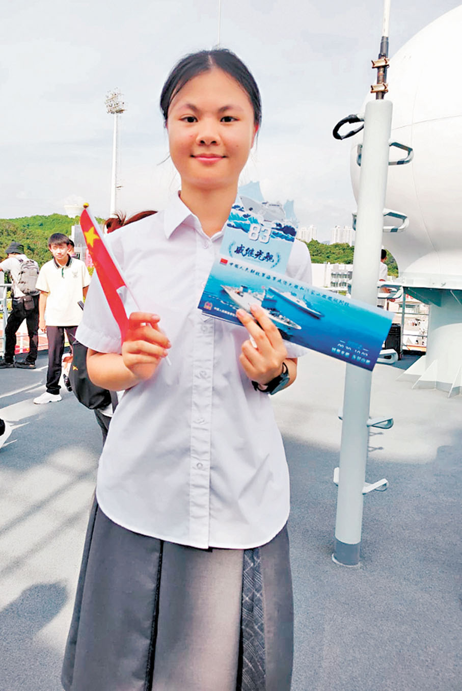鍾同學說,近3個月國家兩次派艦艇來港,並開放予市民參觀,這反映了中央對香港的關懷和照顧。她認為中央在培養青少年愛國意識方面付出了很多努力。這讓她感到很暖心,也希望內地與香港的聯繫能愈來愈緊密,彼此關係愈來愈好。適逢今日是國慶節,她祝願祖國今後愈來愈好,永遠繁榮昌盛。