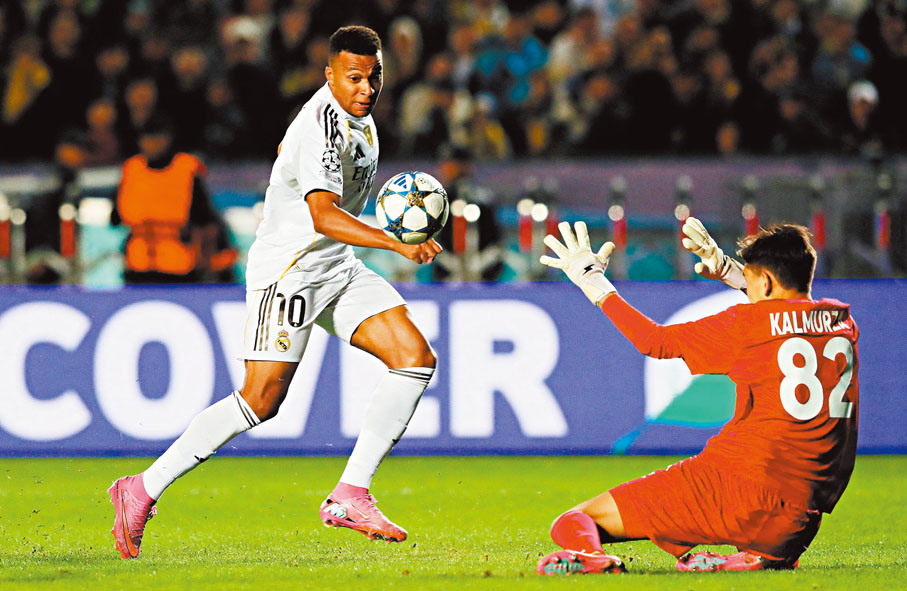 剛在西甲「馬德里打吡」不敵馬體會的皇馬,是役作客哈薩克斯坦球隊卡拉特未受考驗,憑藉基利安麥巴比上演「帽子戲法」連中三元,加上卡馬雲加和巴謙戴亞斯各建一功,作客以5:0大勝而回。