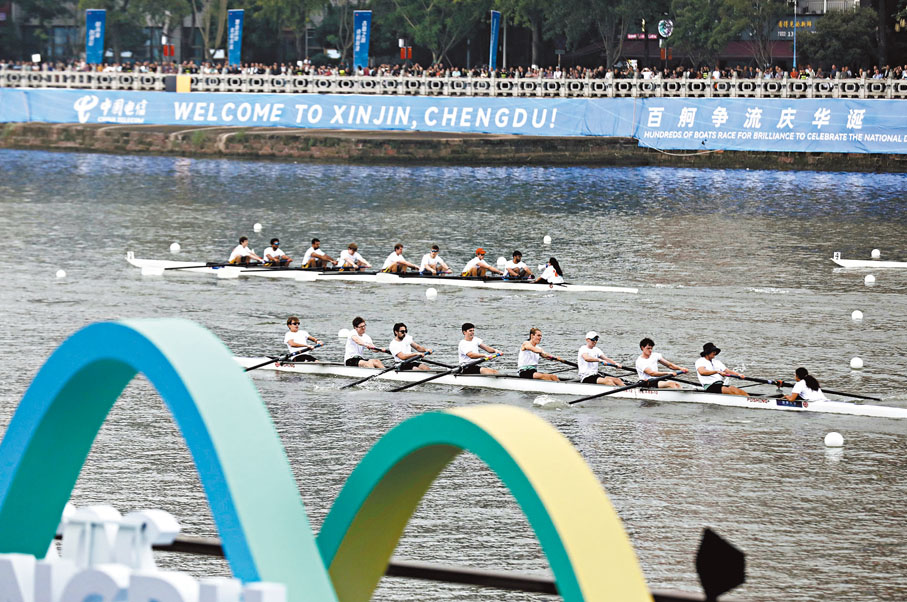 2025年成都賽艇公開賽昨日(1日)開槳,來自北京大學、清華大學、哈佛大學、劍橋大學及牛津大學等中外名校的賽艇隊在成都新津南河百舸爭流,賽事為期兩天,昨日先進行大學組、公開組預賽及大學組複賽,今日進行大學組準決賽、決賽及公開組決賽。 ●中新社