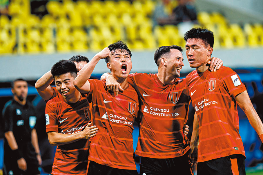 周二(9月30日)2025/2026球季亞冠精英聯賽東亞區第二輪賽事,中超球隊成都蓉城(圖)憑藉周定洋的入球,主場以1:0戰勝韓職球隊FC江原,斬獲隊史首場亞冠正賽勝利,該隊下一輪將於10月21日繼續坐鎮主場,迎戰馬來西亞球隊柔佛DT。同日,上海海港作客1:1賽和廣島三箭。 ●新華社