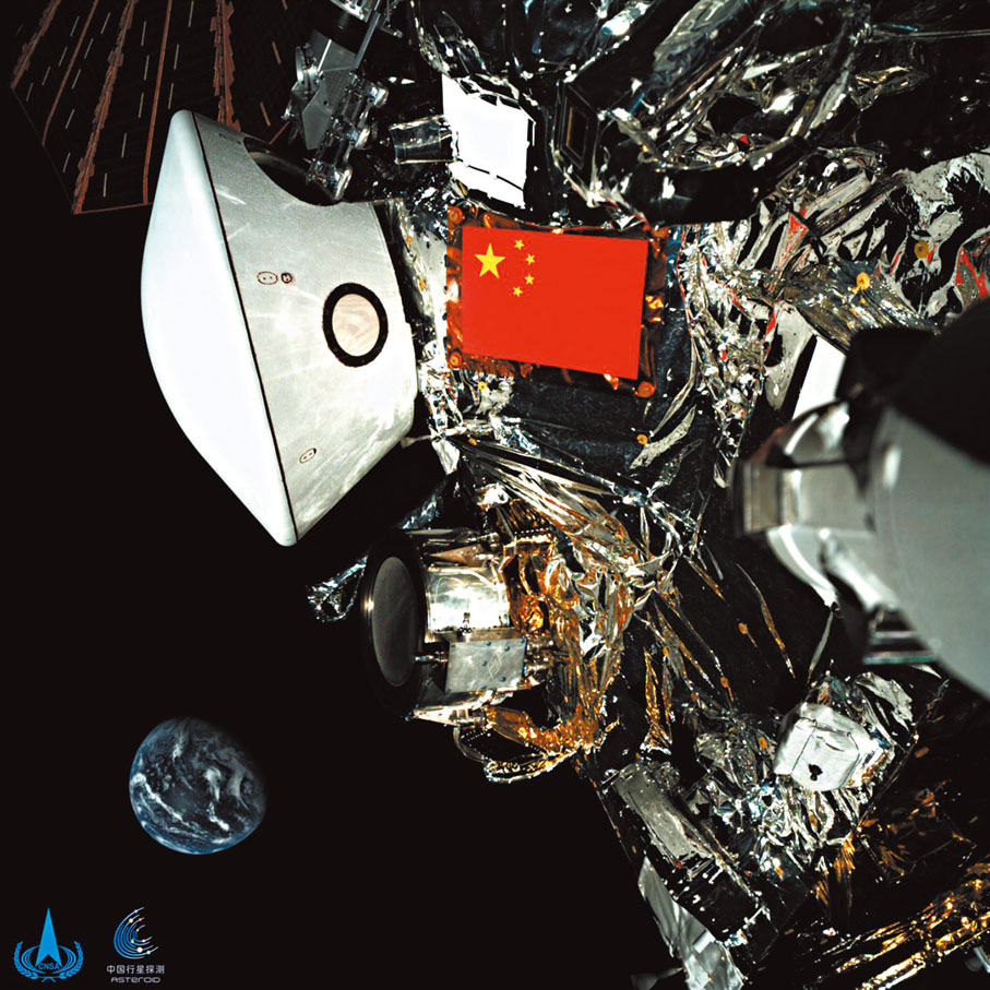 香港文匯報訊(記者 劉凝哲 北京報道)10月1日清晨,國家航天局發布行星探測工程天問二號任務探測器在軌飛行期間獲取的探測器與地球合影圖像。該圖像由安裝在探測器機械臂上的監視相機拍攝,鮮艷的五星紅旗、白色的返回艙和遠處藍色的地球構成一幅令人無限遐想的美妙畫面。