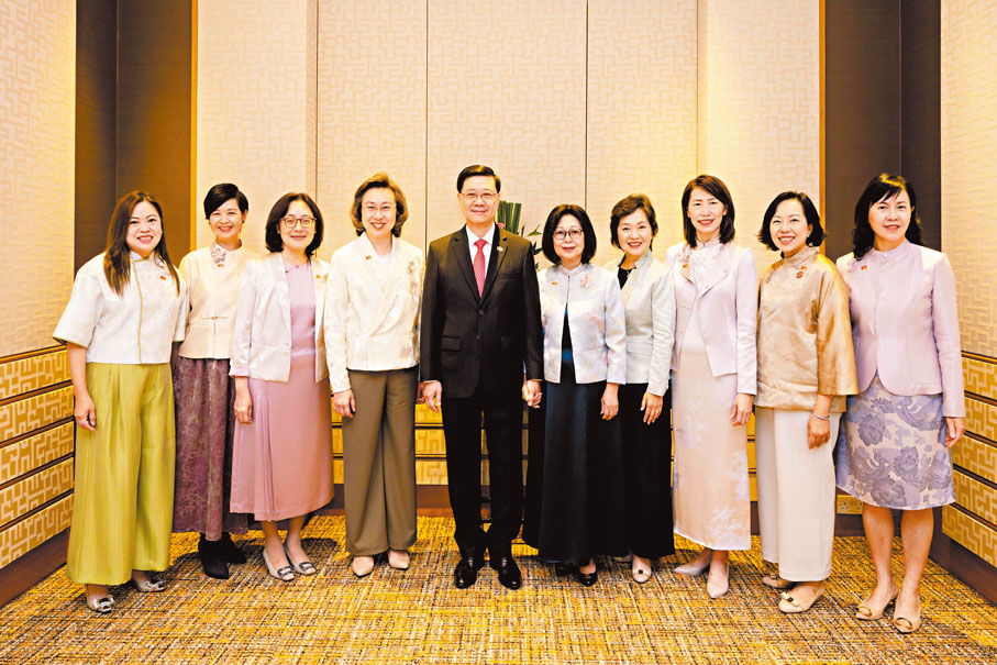 在10月1日國慶日,特首夫人李林麗嬋及一眾女官員,包括發展局局長甯漢豪、房屋局局長何永賢、公務員事務局局長楊何蓓茵、教育局局長蔡若蓮、民政及青年事務局局長麥美娟、運輸及物流局局長陳美寶、文化體育及旅遊局局長羅淑佩、特首辦主任葉文娟都同時穿著華服參與國慶升旗儀式及酒會。原來,這些服裝皆出自本地青年之手,由香港知專設計學院時裝及形象設計學系高級文憑師生團隊設計。●文:香港文匯報記者 康敬、圖:何永賢Fb圖片