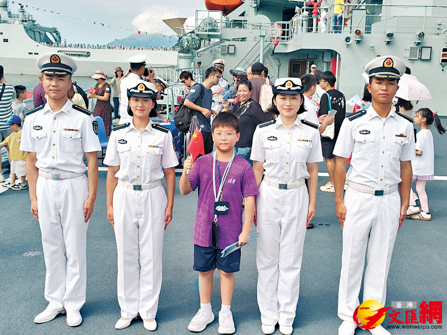 9歲的歐陽小朋友驕傲地說,這次是他第3次參觀軍艦,可惜的是因為年齡關係,他不能登上山東艦航母,只能參觀湛江艦和運城艦。不過這次參觀軍艦,他首次與4位兵哥哥和兵姐姐合照,覺得大家都很熱情,而且很有型,「兵哥哥很帥,兵姐姐也很漂亮。」