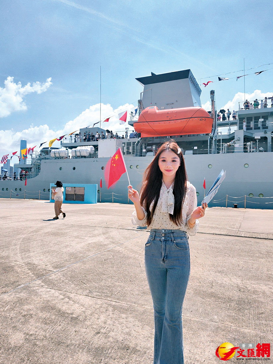 來自廈門的遊客林小姐是第一次參觀軍艦,「這與隔著電視看閱兵的感受完全不同,那種直觀的震撼感會更強?!沽中〗阌X得解放軍戰士特別帥氣,更和他們有簡單交流,感覺他們特別有禮貌,很照顧參觀者,「真的不愧是人民子弟兵?!沽中〗憬翊翁匾獍萦氂H朋好友幫忙搶票,更專門來港參觀軍艦,順帶旅遊,「今日(指昨日)是國慶日,參觀軍艦可說是一種特別的慶祝祖國生日的方式。」她覺得這類活動很有意義,希望大家都能參加,親身感受祖國現在的發展有多好。她並祝願祖國繁榮昌盛,發展愈來愈好。
